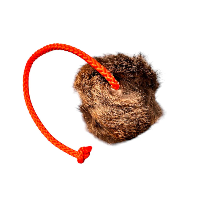 The Furry Tennis Ball is exactly what it says on the tin. It is a Tennis Ball covered in Rabbit Fur with a long throw rope.