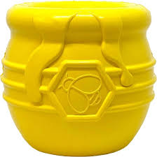 We've gotten a lot of design inspiration from the humble bumble bee over the years, creating honeycomb emats, honey stick chew bones, and honey bear treat dispensers. Now, we complete our honey-inspired collection with a honey pot! Winnie the Pooh would love it and so will your dog. This fun treat dispenser can be filled with all types of foods and it can be frozen to increase the feeding challenge.